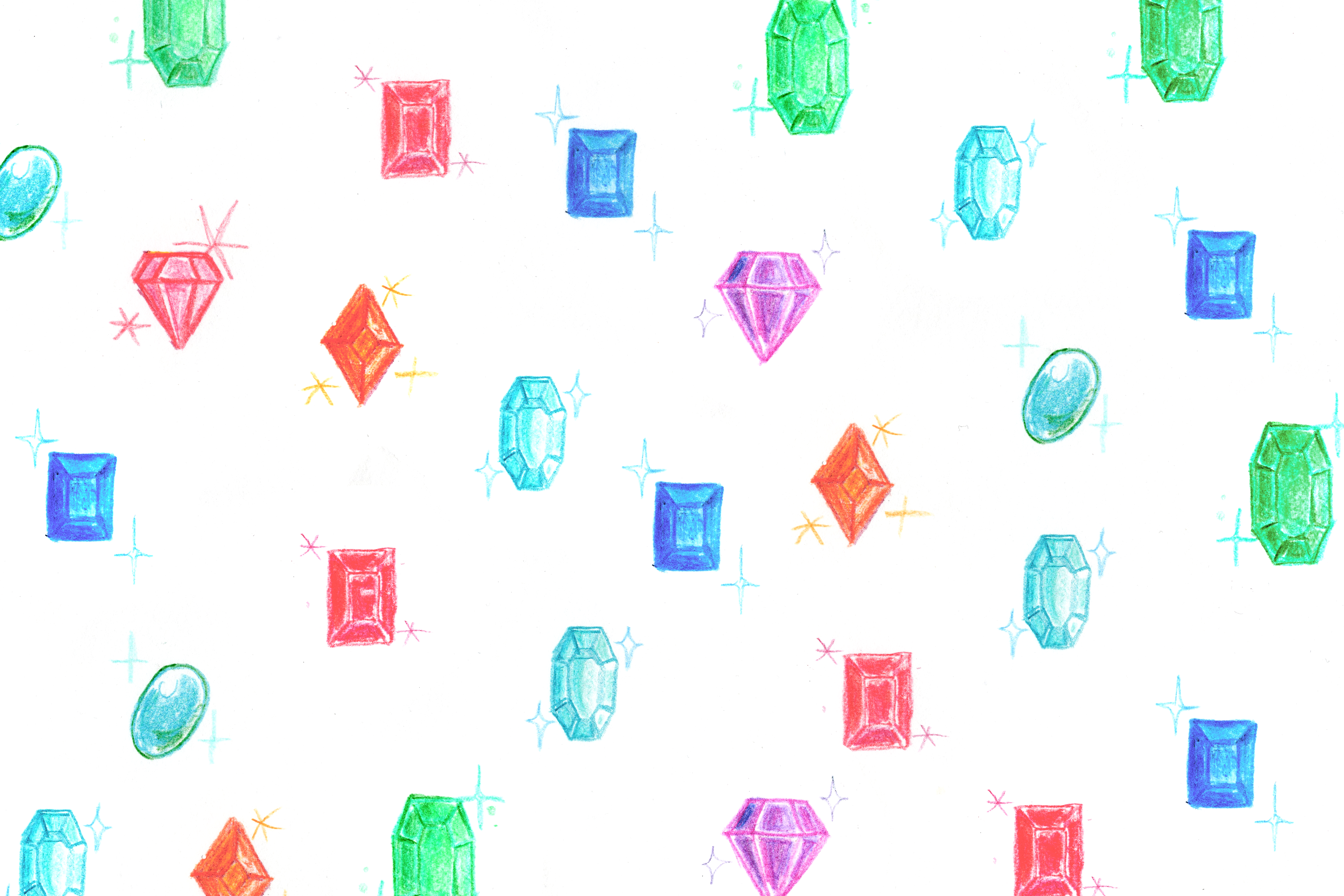 パターン イラスト 色鉛筆 宝石 ルビー エメラルド ダイア ダイヤモンド サファイア アメジスト 絵 可愛い 綺麗な