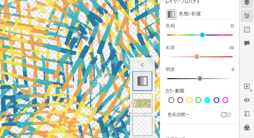 さきほどのレインボーのスーラも色味を変えることができ、そのまま他のブラシの効果を参照して描画できます。