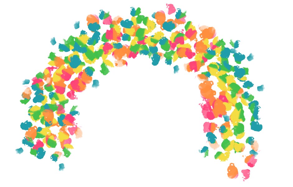個人的におすすめなのがレインボーのスーラでカラフルな点描画風のブラシです。